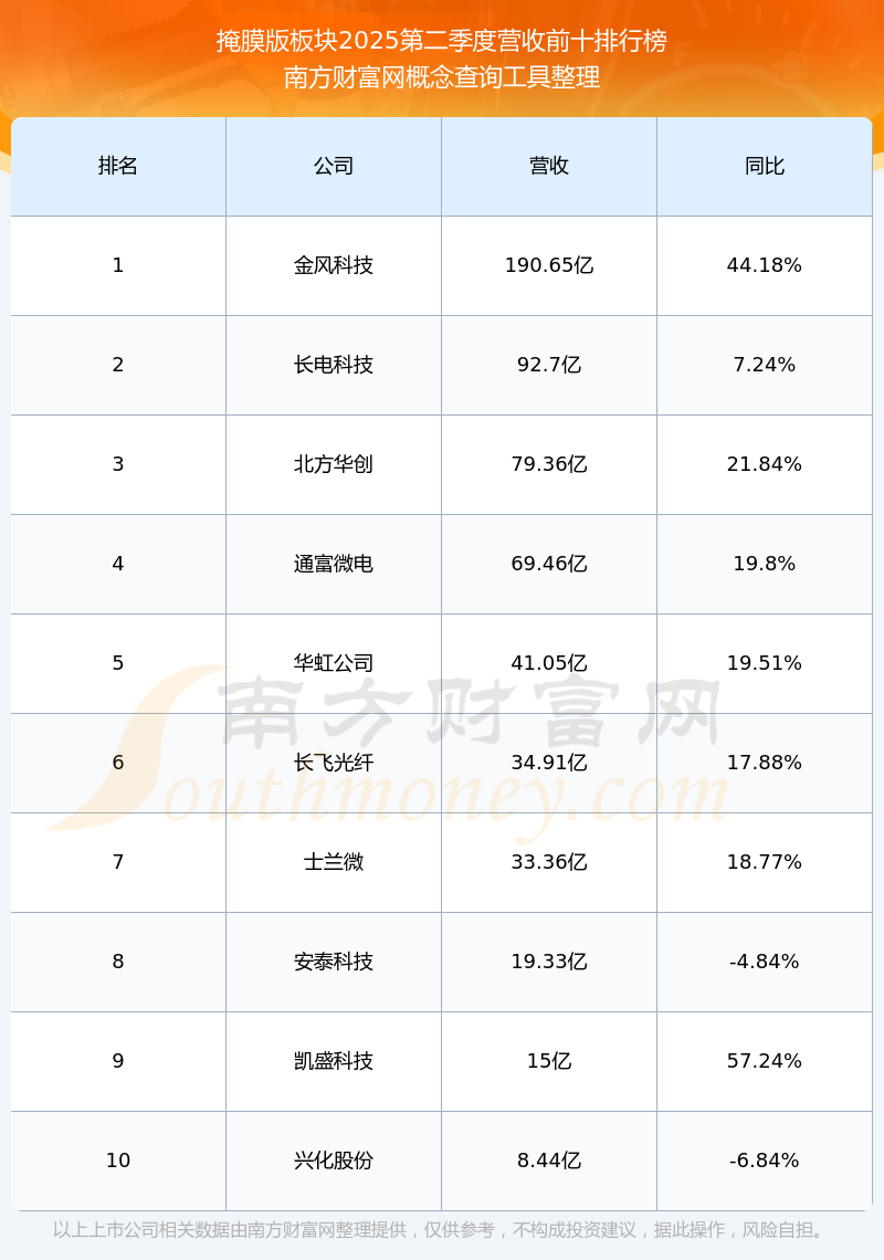 按照南方財富網(wǎng)概念查詢工具統(tǒng)計,該股所屬板塊為掩膜版板塊,該板塊共有26只股票,龍圖光罩2025第二季度營收在該板塊中排名為第26名,該板塊2025第二季度營收排名前十的股票如下表: