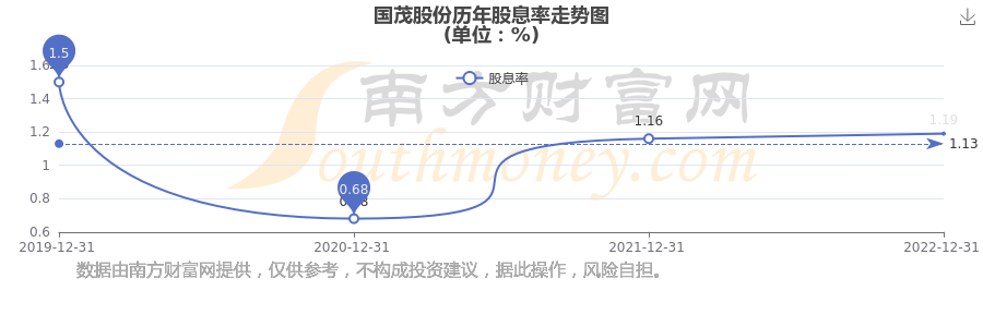 近年國茂股份年度股息率走勢如下圖: