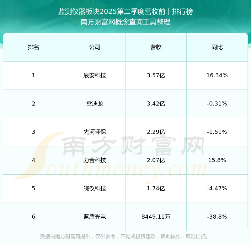 按照南方財(cái)富網(wǎng)概念查詢工具統(tǒng)計(jì),該股所屬板塊為監(jiān)測(cè)儀器板塊,該板塊共有6只股票,碧興物聯(lián)2025第二季度營(yíng)收在該板塊中排名為第6名,該板塊2025第二季度營(yíng)收排名前十的股票如下表: