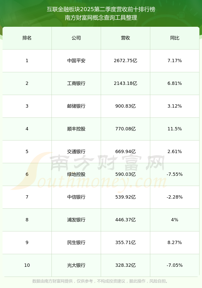 按照南方財(cái)富網(wǎng)概念查詢工具統(tǒng)計(jì),該股所屬板塊為互聯(lián)金融板塊,該板塊共有238只股票,華夏銀行2025第二季度營收在該板塊中排名為第11名,該板塊2025第二季度營收排名前十的股票如下表: