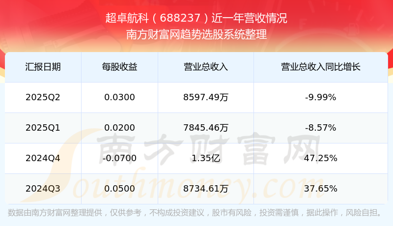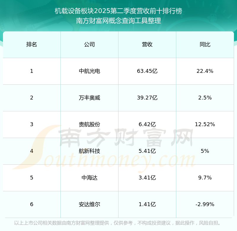 按照南方財富網(wǎng)概念查詢工具統(tǒng)計,該股所屬板塊為機載設(shè)備板塊,該板塊共有6只股票,超卓航科2025第二季度營收在該板塊中排名為第6名,該板塊2025第二季度營收排名前十的股票如下表: