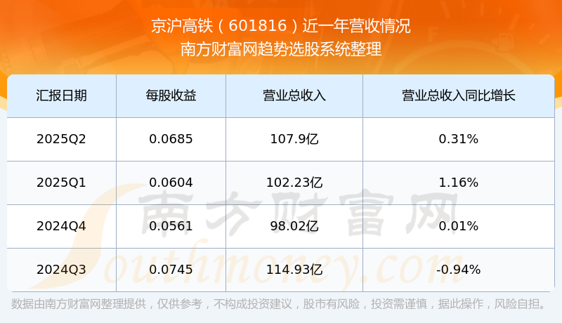 2025年第二季度,京滬高鐵營收同比0.31%,凈利潤(rùn)同比-1.22%。