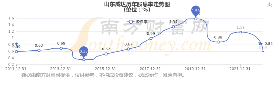 近年山東威達(dá)年度股息率走勢(shì)如下圖: