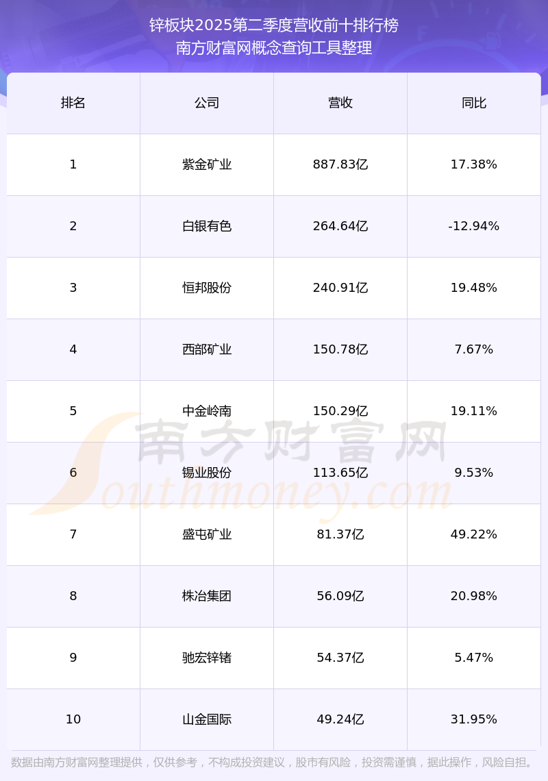 按照南方財富網概念查詢工具統(tǒng)計,該股所屬板塊為鋅板塊,該板塊共有27只股票,西部礦業(yè)2025第二季度營收在該板塊中排名為第4名,該板塊2025第二季度營收排名前十的股票如下表: