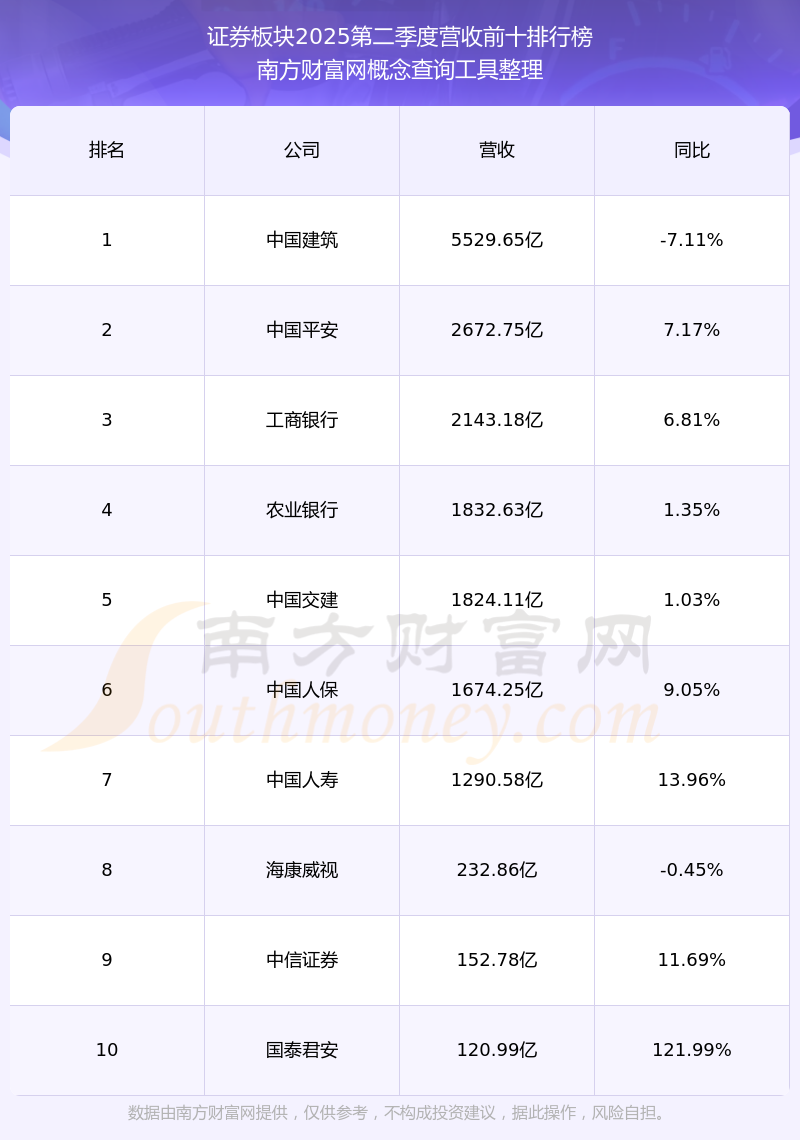 按照南方財富網(wǎng)概念查詢工具統(tǒng)計,該股所屬板塊為證券板塊,該板塊共有65只股票,中泰證券2025第二季度營收在該板塊中排名為第23名,該板塊2025第二季度營收排名前十的股票如下表: