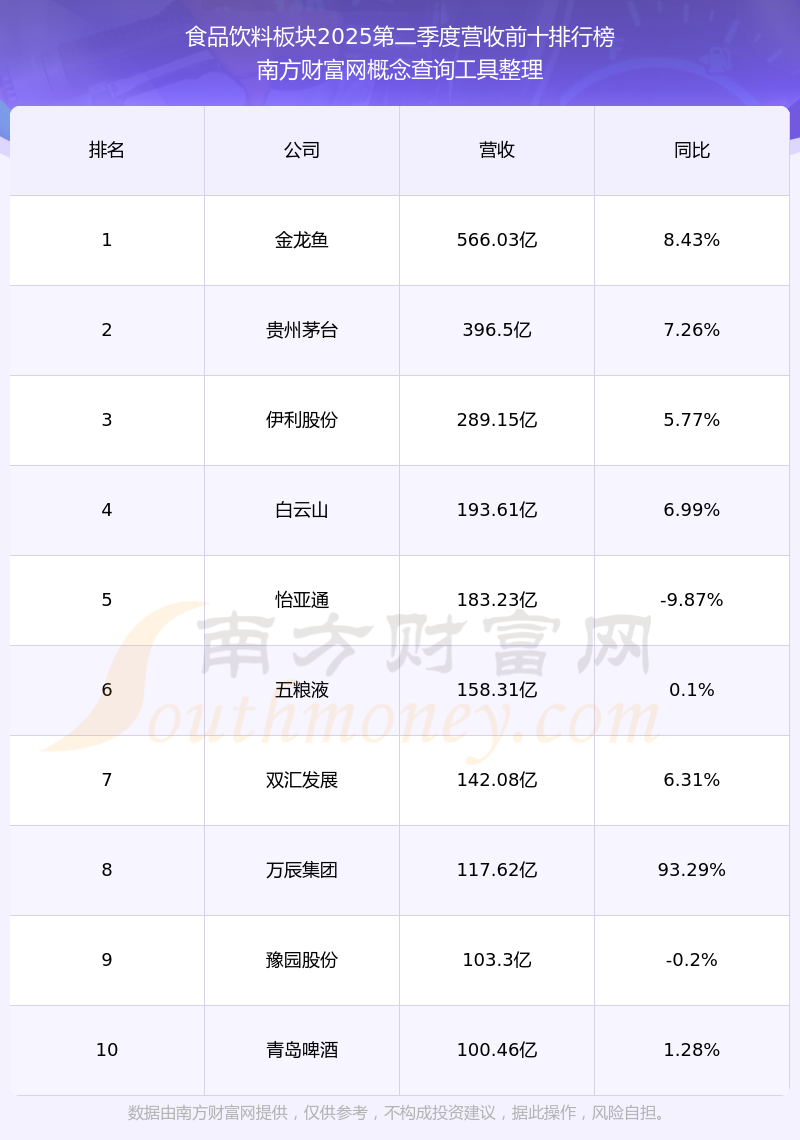 按照南方財富網(wǎng)概念查詢工具統(tǒng)計,該股所屬板塊為食品飲料板塊,該板塊共有243只股票,妙可藍(lán)多2025第二季度營收在該板塊中排名為第55名,該板塊2025第二季度營收排名前十的股票如下表:
