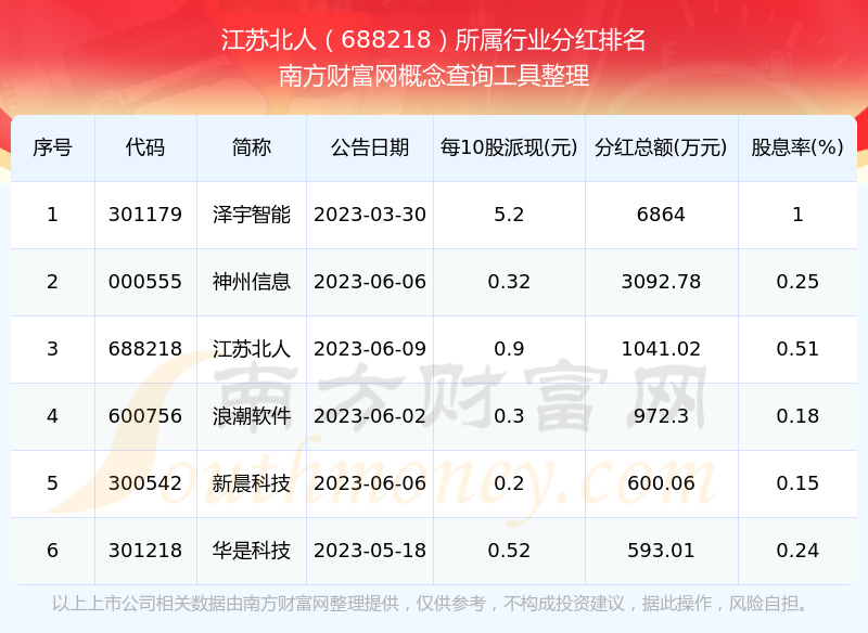二、江蘇北人688218行業(yè)分紅排名