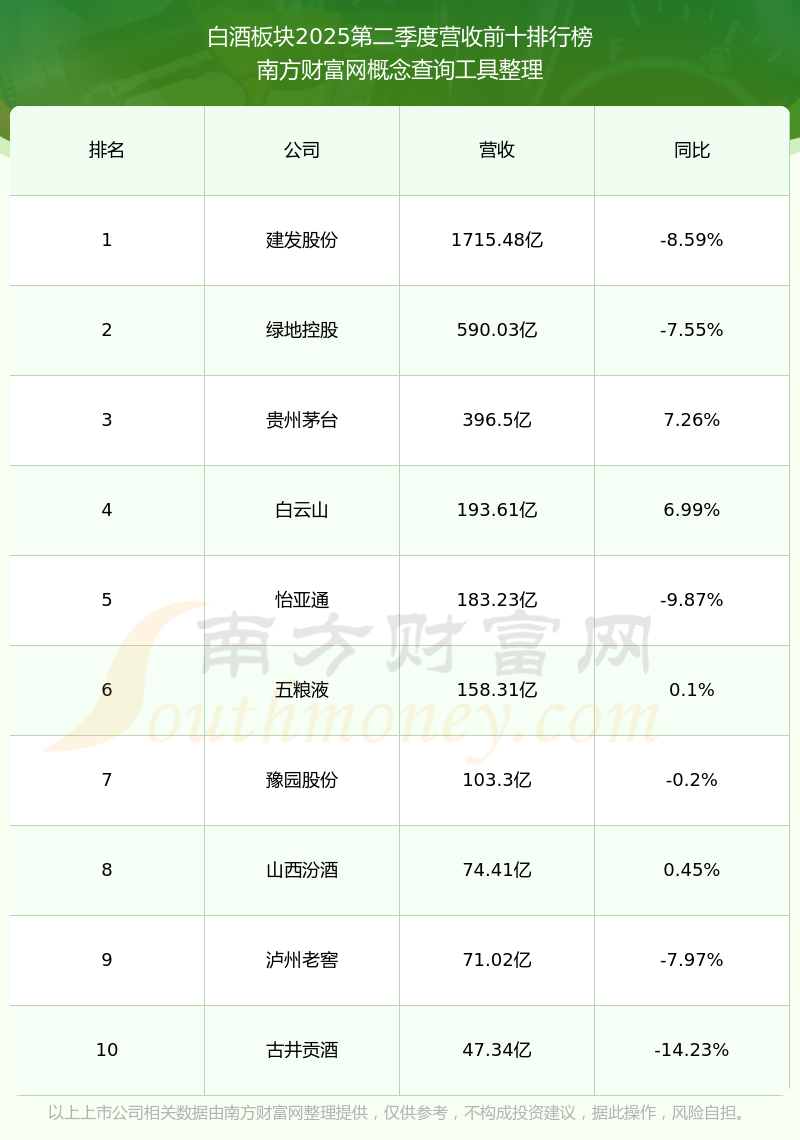 按照南方財富網(wǎng)概念查詢工具統(tǒng)計,該股所屬板塊為白酒板塊,該板塊共有59只股票,口子窖2025第二季度營收在該板塊中排名為第28名,該板塊2025第二季度營收排名前十的股票如下表: