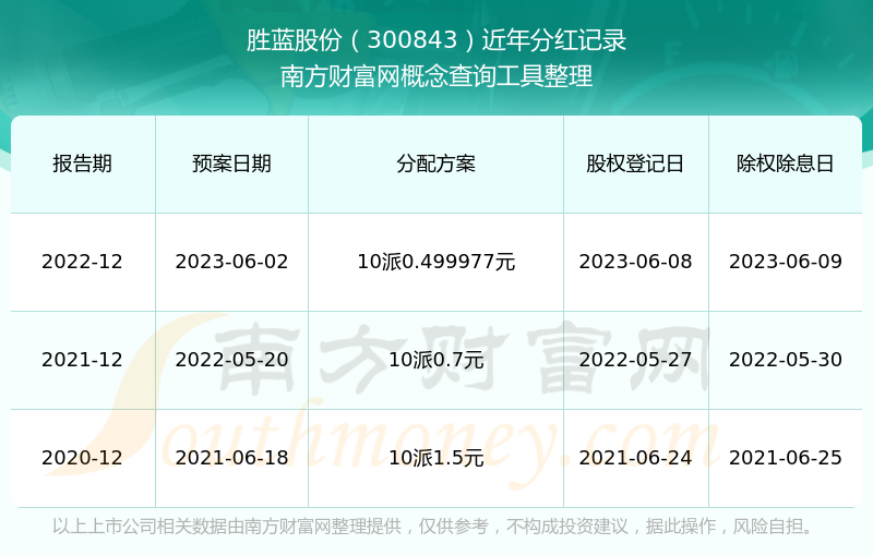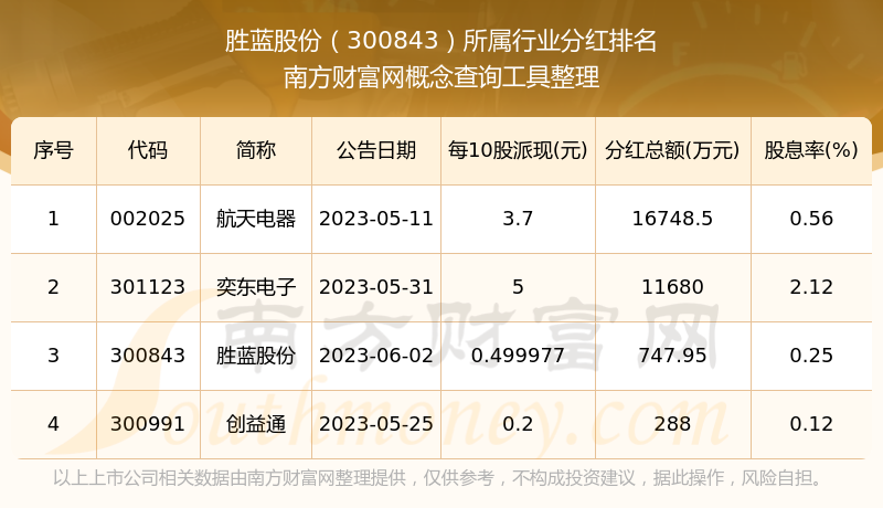 二、勝藍(lán)股份300843行業(yè)分紅排名