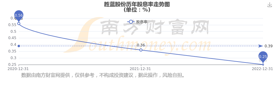 近年勝藍(lán)股份年度股息率走勢如下圖: