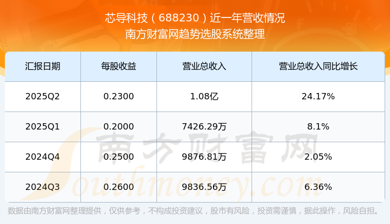 一、芯導(dǎo)科技(688230)股票營(yíng)收情況