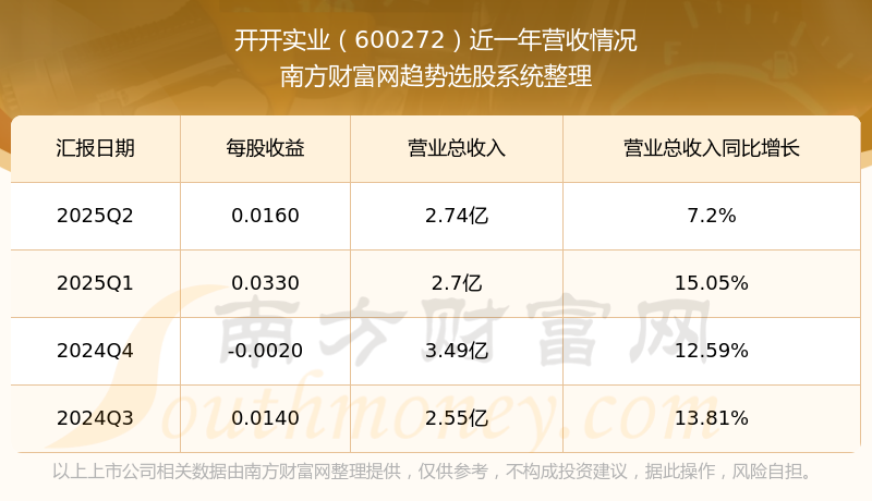 開開實(shí)業(yè)2025年第二季度報(bào)告顯示,公司實(shí)現(xiàn)主營(yíng)業(yè)務(wù)收入2.74億元,較去年同期增長(zhǎng)7.2%;歸屬于母公司股東的凈利潤(rùn)為382.25萬元,同比增長(zhǎng)-50.67%;扣除非經(jīng)常性損益后的凈利潤(rùn)為153.33萬元,同比增長(zhǎng)-49.87%。