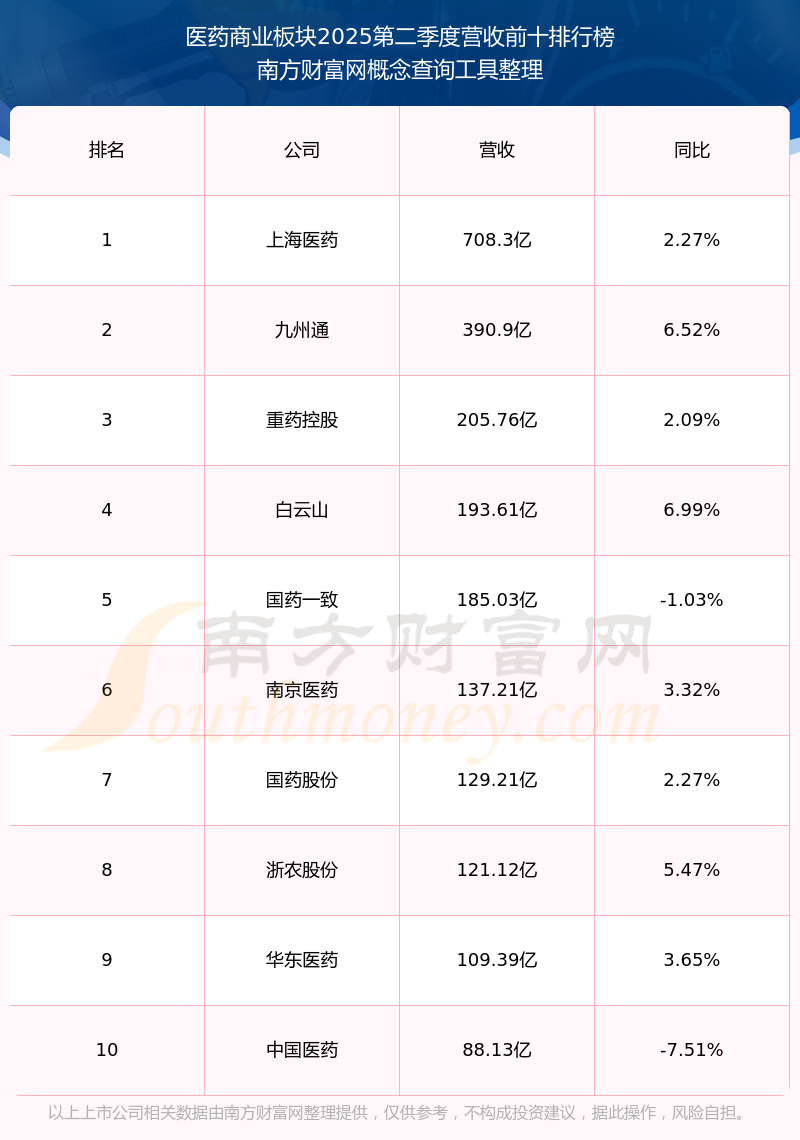 按照南方財(cái)富網(wǎng)概念查詢工具統(tǒng)計(jì),該股所屬板塊為醫(yī)藥商業(yè)板塊,該板塊共有62只股票,開開實(shí)業(yè)2025第二季度營(yíng)收在該板塊中排名為第52名,該板塊2025第二季度營(yíng)收排名前十的股票如下表: