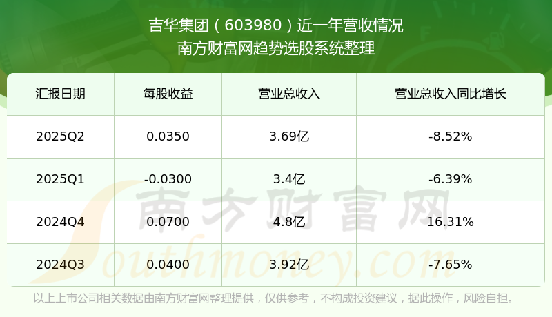 一、吉華集團(tuán)(603980)股票營(yíng)收情況