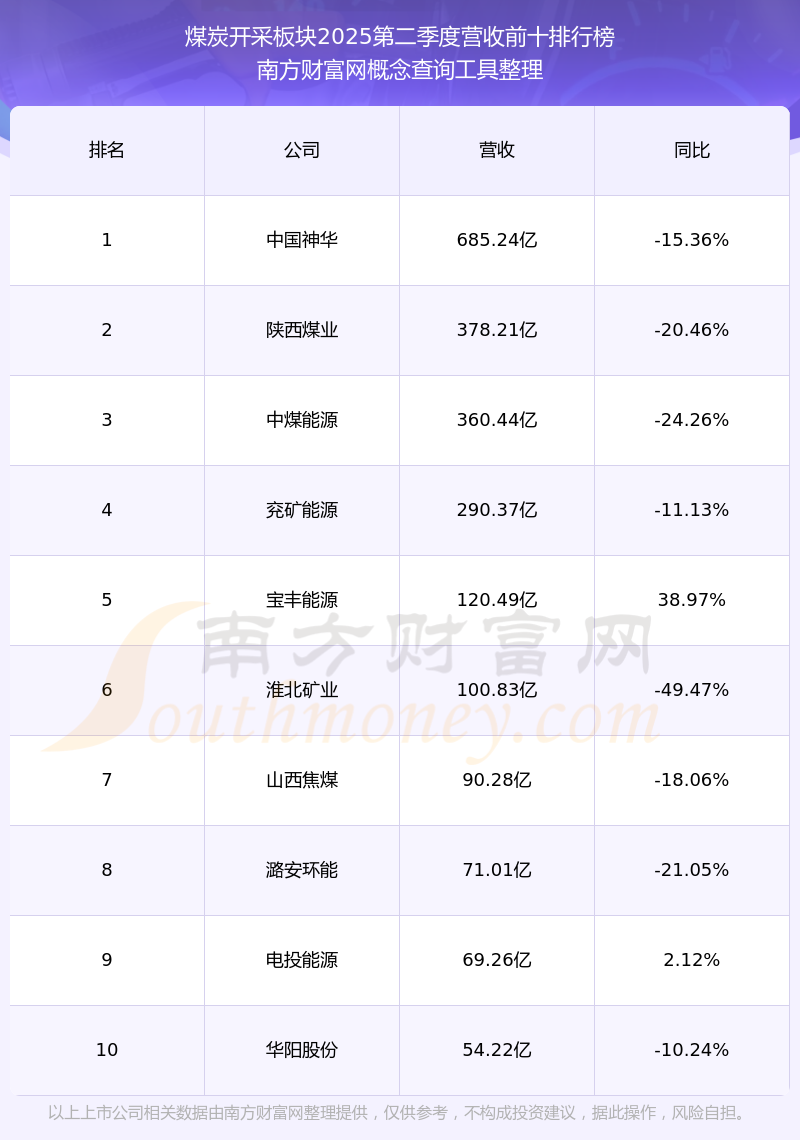 按照南方財(cái)富網(wǎng)概念查詢工具統(tǒng)計(jì),該股所屬板塊為煤炭開(kāi)采板塊,該板塊共有38只股票,寶泰隆2025第二季度營(yíng)收在該板塊中排名為第36名,該板塊2025第二季度營(yíng)收排名前十的股票如下表: