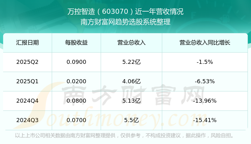 萬(wàn)控智造股票近一年?duì)I收情況如下表: