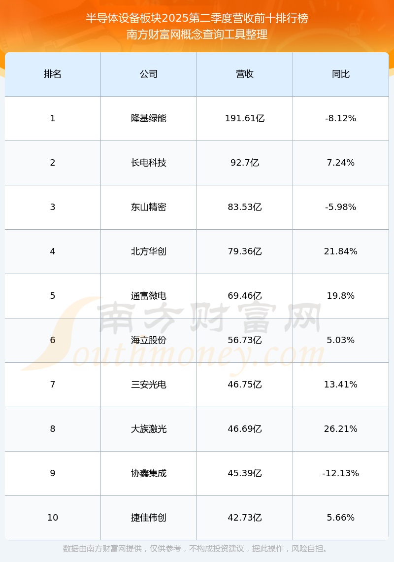 按照南方財(cái)富網(wǎng)概念查詢工具統(tǒng)計(jì),該股所屬板塊為半導(dǎo)體設(shè)備板塊,該板塊共有168只股票,至純科技2025第二季度營(yíng)收在該板塊中排名為第48名,該板塊2025第二季度營(yíng)收排名前十的股票如下表: