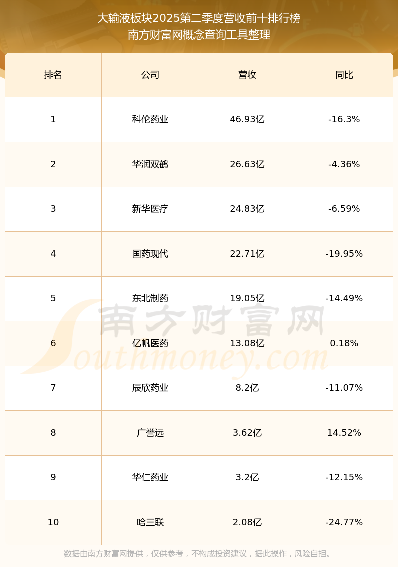 按照南方財富網(wǎng)概念查詢工具統(tǒng)計,該股所屬板塊為大輸液板塊,該板塊共有15只股票,辰欣藥業(yè)2025第二季度營收在該板塊中排名為第7名,該板塊2025第二季度營收排名前十的股票如下表: