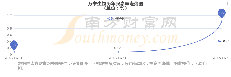 近年萬(wàn)泰生物年度股息率走勢(shì)如下圖: