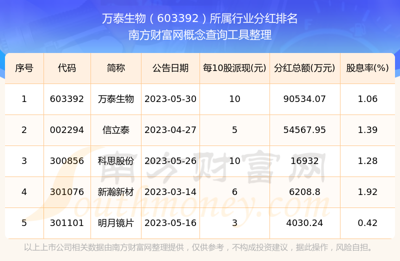 二、萬(wàn)泰生物603392行業(yè)分紅排名