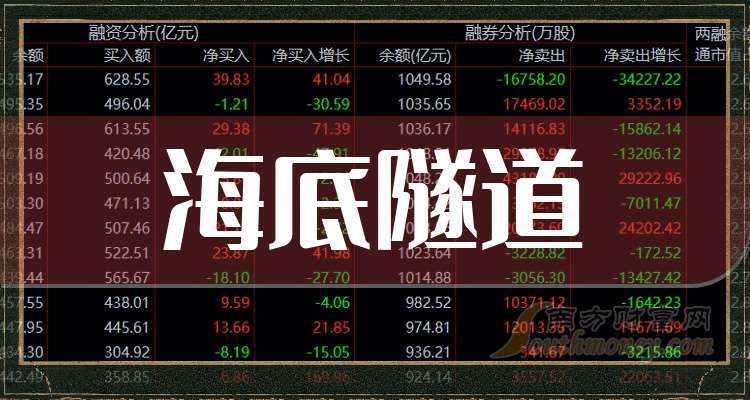 海底隧道題材龍頭有哪些?據(jù)南方財(cái)富網(wǎng)概念查詢工具數(shù)據(jù)顯示,海底隧道題材龍頭有: