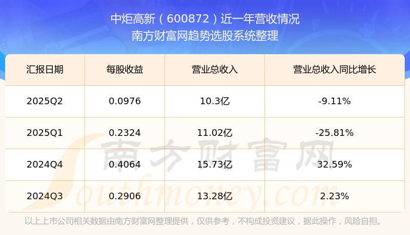 于2025年第二季度,中炬高新披露了其業(yè)績表現(xiàn),其中主營業(yè)務(wù)收入10.3億元,相較于去年同期-9.11%。此外,公司歸屬于母公司的凈利潤為7578.07萬元,同比增長了-31.57%。在扣除所有非經(jīng)常性損益后,凈利潤8278.31萬元,同比增長-19.46%。