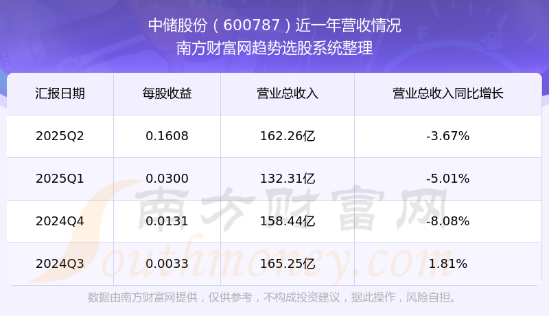 一、中儲股份(600787)股票營收情況