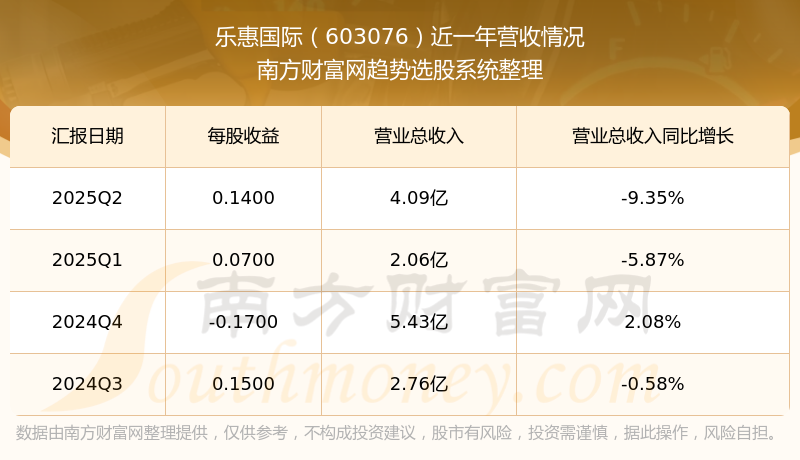 樂惠國際2025年第二季度顯示,公司主營收入4.09億元,同比-9.35%;歸母凈利潤1669.81萬元,同比-11.13%;扣非凈利潤1436.17萬元,同比15.54%。