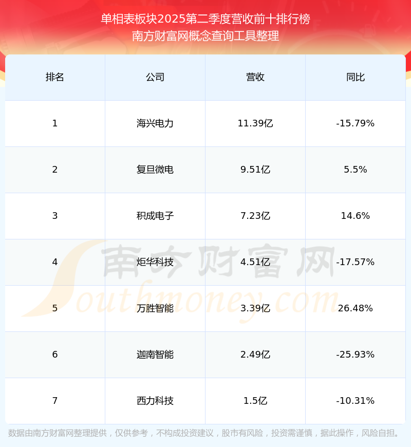 按照南方財富網(wǎng)概念查詢工具統(tǒng)計,該股所屬板塊為單相表板塊,該板塊共有7只股票,西力科技2025第二季度營收在該板塊中排名為第7名,該板塊2025第二季度營收排名前十的股票如下表: