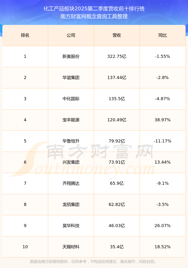 按照南方財富網(wǎng)概念查詢工具統(tǒng)計,該股所屬板塊為化工產(chǎn)品板塊,該板塊共有64只股票,艾森股份2025第二季度營收在該板塊中排名為第64名,該板塊2025第二季度營收排名前十的股票如下表: