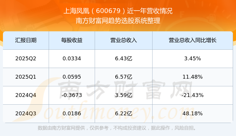上海鳳凰發(fā)布2025年第二季度財(cái)報(bào)。實(shí)現(xiàn)總營收6.43億元,同比增長3.45%;扣非凈利潤同比增長9.96%至1151.44萬元。
