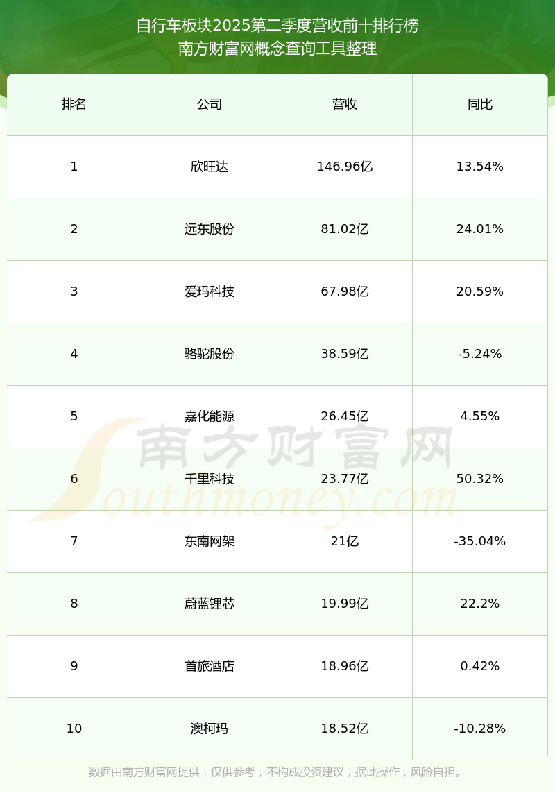 按照南方財(cái)富網(wǎng)概念查詢工具統(tǒng)計(jì),該股所屬板塊為自行車板塊,該板塊共有36只股票,上海鳳凰2025第二季度營收在該板塊中排名為第21名,該板塊2025第二季度營收排名前十的股票如下表: