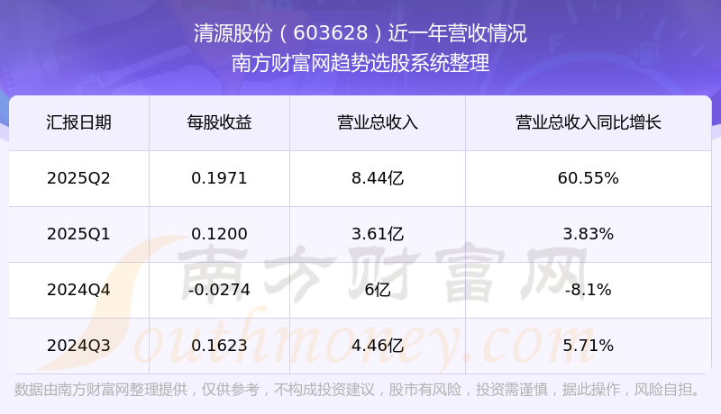 清源股份股票近一年營收情況如下表: