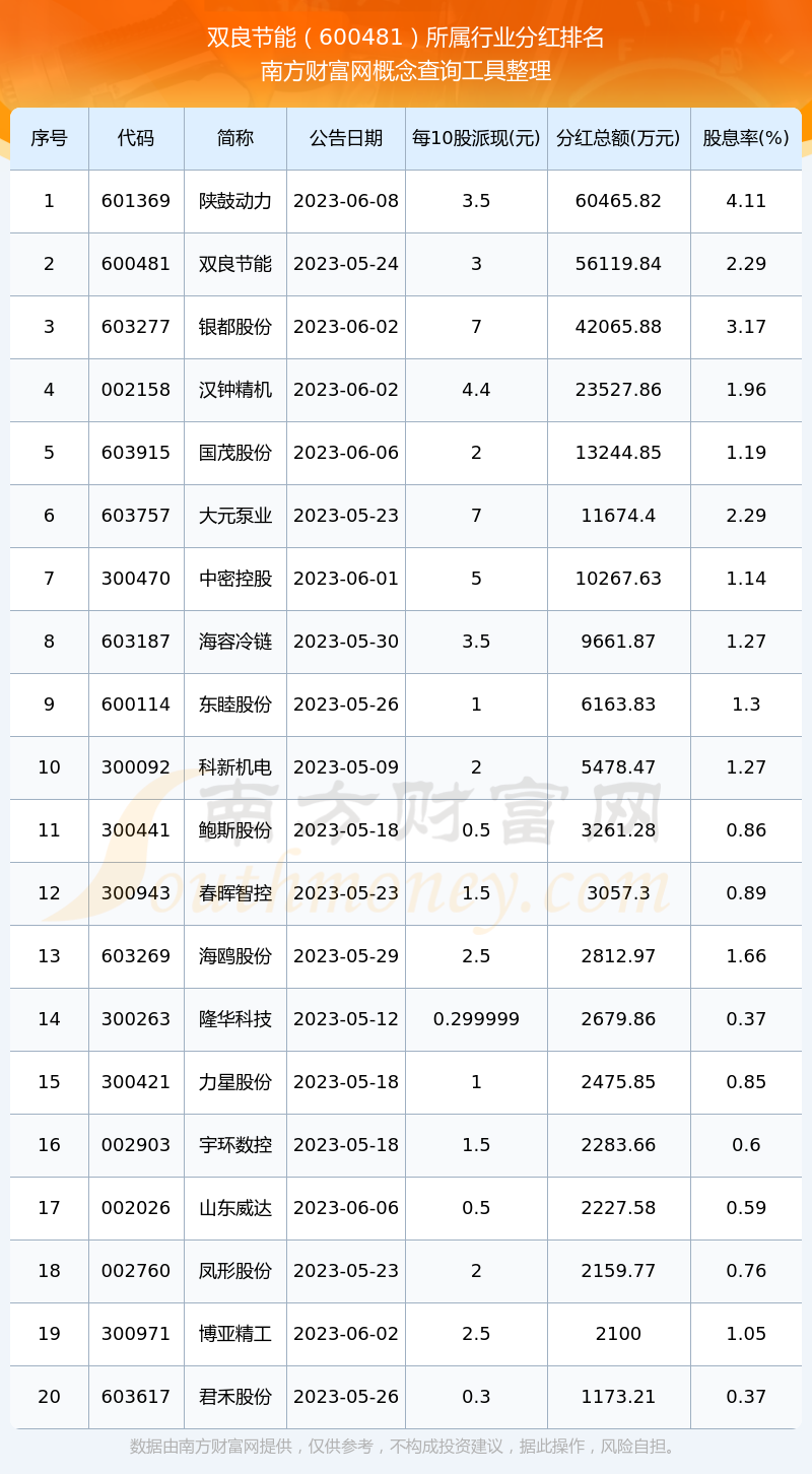 二、雙良節(jié)能600481行業(yè)分紅排名