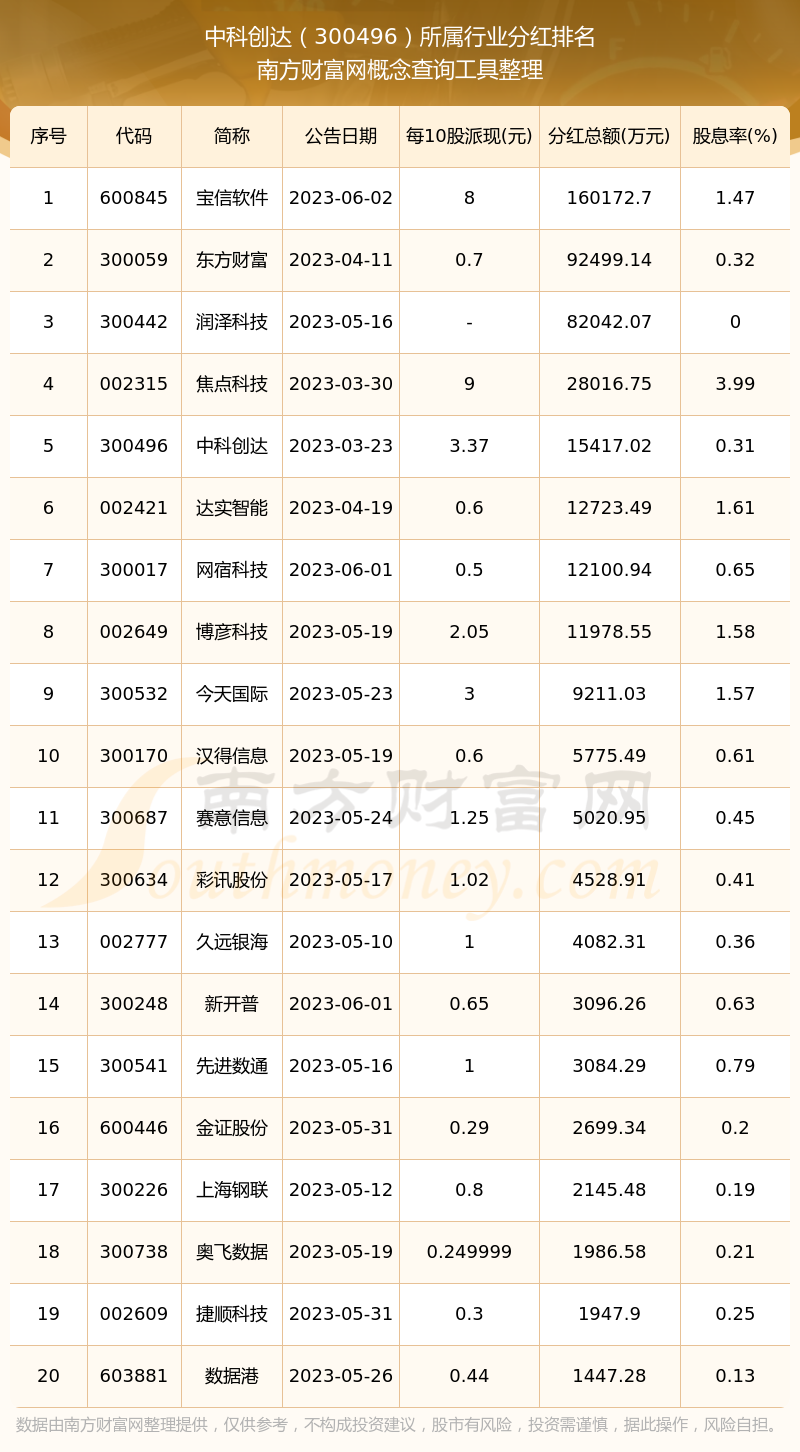 二、中科創(chuàng)達300496行業(yè)分紅排名