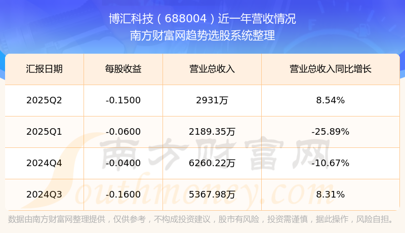 財報顯示,2025年第二季度博匯科技營收2931萬元,同比增長8.54%,凈利潤-1249.37萬元,同比增長15.51%。