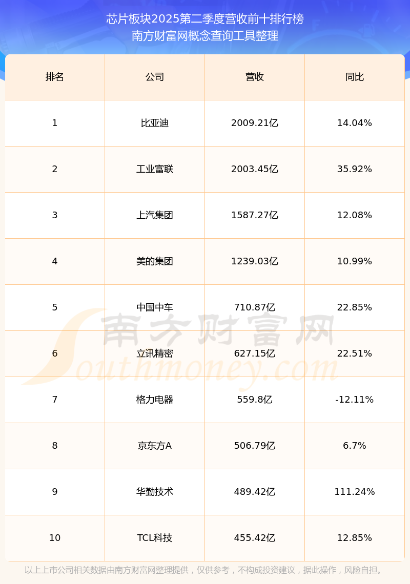 按照南方財(cái)富網(wǎng)概念查詢工具統(tǒng)計(jì),該股所屬板塊為芯片板塊,該板塊共有913只股票,龍芯中科2025第二季度營收在該板塊中排名為第805名,該板塊2025第二季度營收排名前十的股票如下表: