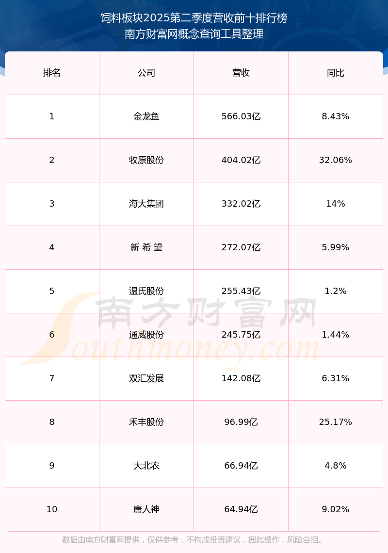 按照南方財富網(wǎng)概念查詢工具統(tǒng)計,該股所屬板塊為飼料板塊,該板塊共有66只股票,天馬科技2025第二季度營收在該板塊中排名為第32名,該板塊2025第二季度營收排名前十的股票如下表: