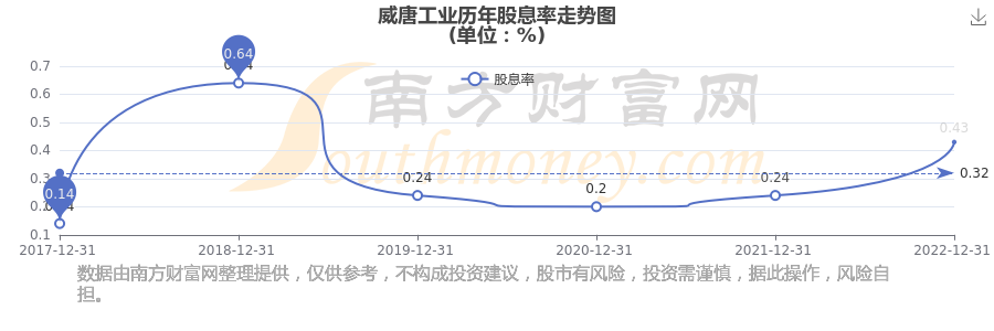 近年威唐工業(yè)年度股息率走勢如下圖: