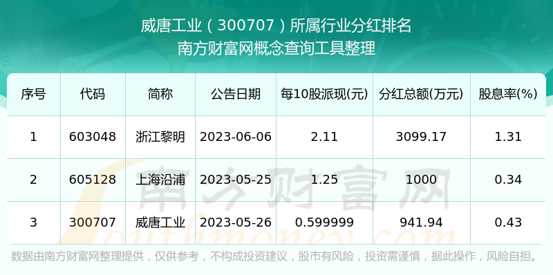 二、威唐工業(yè)300707行業(yè)分紅排名
