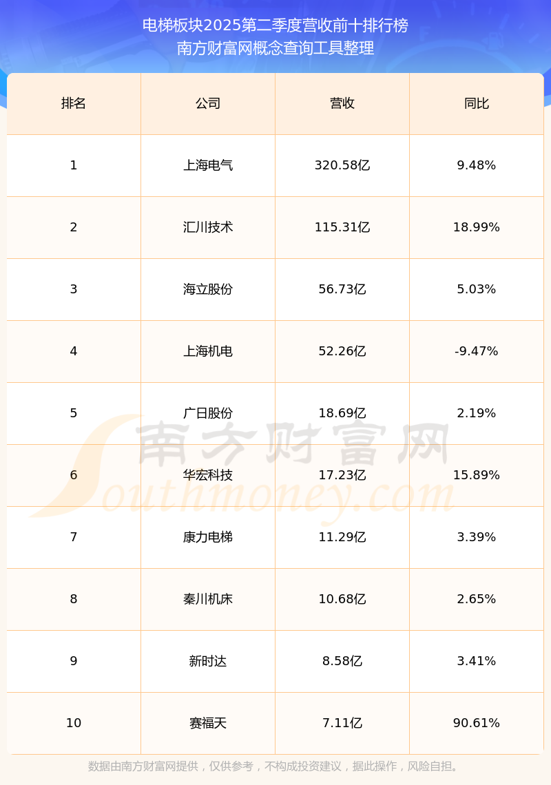 按照南方財富網概念查詢工具統(tǒng)計,該股所屬板塊為電梯板塊,該板塊共有22只股票,廣日股份2025第二季度營收在該板塊中排名為第5名,該板塊2025第二季度營收排名前十的股票如下表: