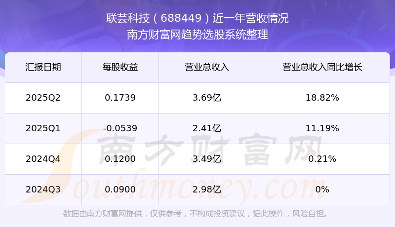 聯(lián)蕓科技2025年第二季度公司實(shí)現(xiàn)營(yíng)業(yè)收入3.69億元,同比18.82%;歸母凈利潤(rùn)8092.96萬(wàn)元,同比161.56%。