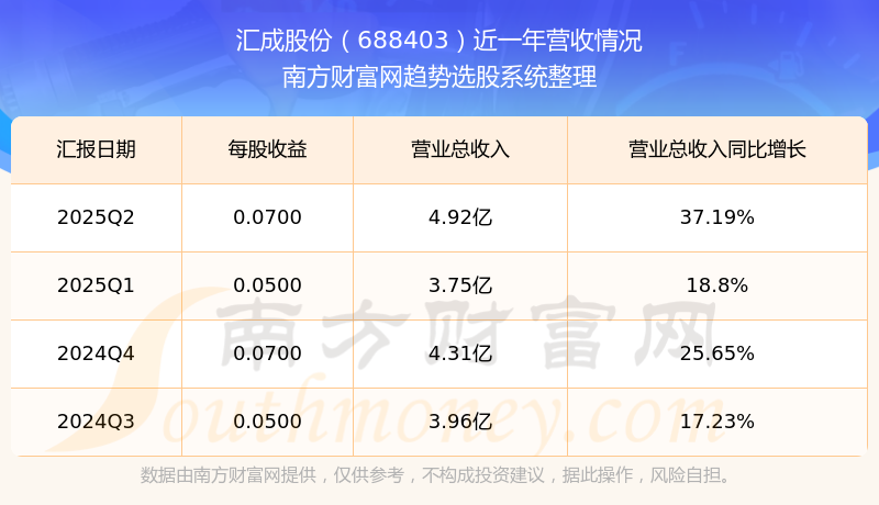 匯成股份(688403)發(fā)布2025年第二季度財(cái)報(bào)。2025年第二季度匯成股份實(shí)現(xiàn)營業(yè)收入4.92億元,同比增加37.19元%,環(huán)比增加31.24%;凈利潤為5545.1萬元,同比增長66.28%,環(huán)比增長36.62%。