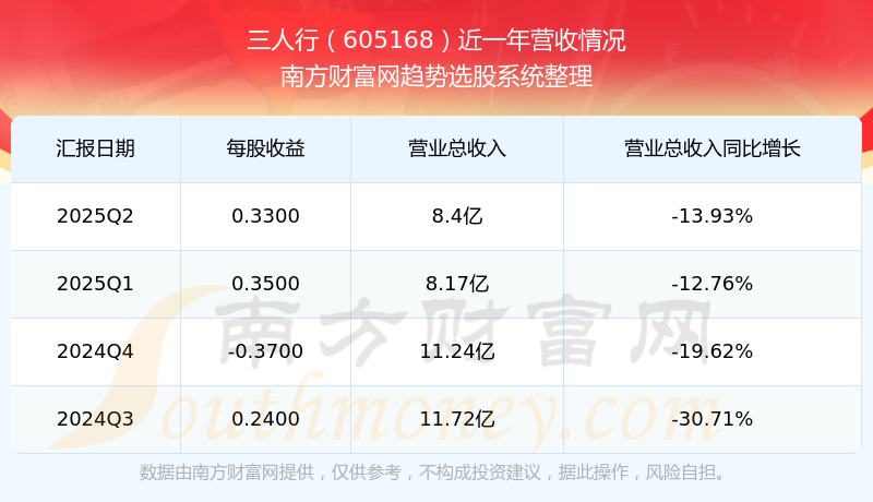 三人行發(fā)布2025年第二季度財(cái)報(bào)。實(shí)現(xiàn)總營(yíng)收8.4億元,同比增長(zhǎng)-13.93%;扣非凈利潤(rùn)同比增長(zhǎng)49.03%至1.08億元。