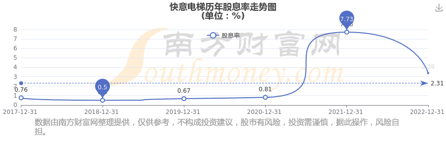 近年快意電梯年度股息率走勢(shì)如下圖: