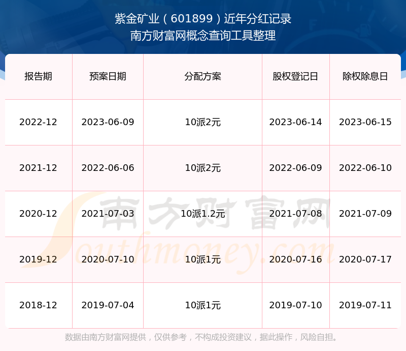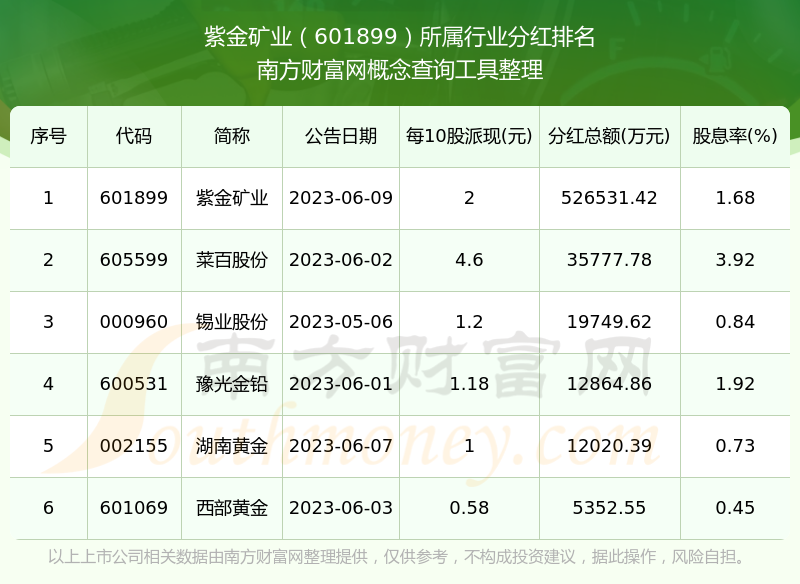 二、紫金礦業(yè)601899行業(yè)分紅排名