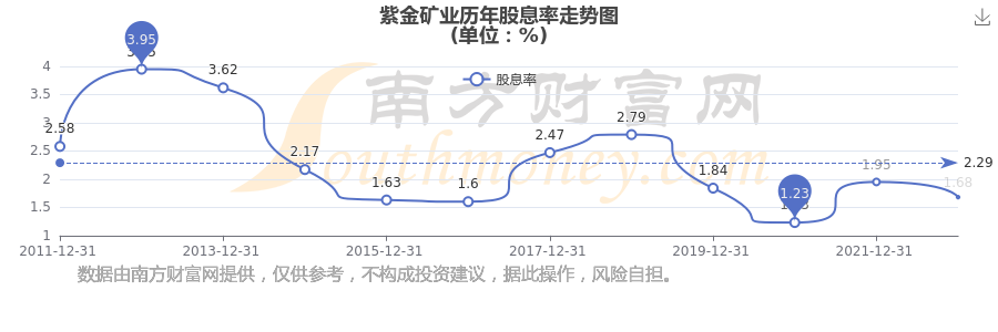近年紫金礦業(yè)年度股息率走勢(shì)如下圖: