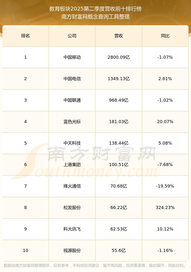 按照南方財(cái)富網(wǎng)概念查詢工具統(tǒng)計(jì),該股所屬板塊為教育板塊,該板塊共有110只股票,博通股份2025第二季度營(yíng)收在該板塊中排名為第96名,該板塊2025第二季度營(yíng)收排名前十的股票如下表: