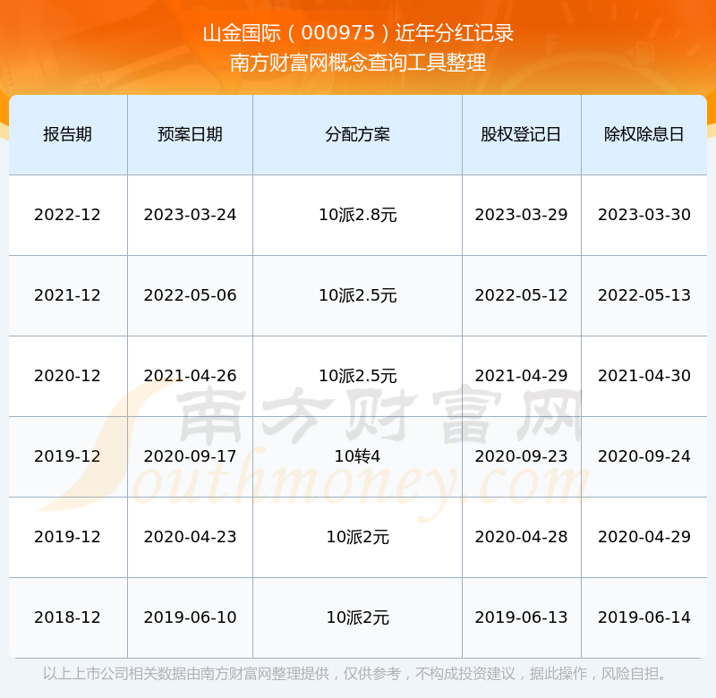 山金國(guó)際最新一次公布的分紅方案為10派2.8元。本次權(quán)益分派股權(quán)登記日為2023年3月29日,除權(quán)除息日為2023年3月30日,派息日為2023年3月30日。