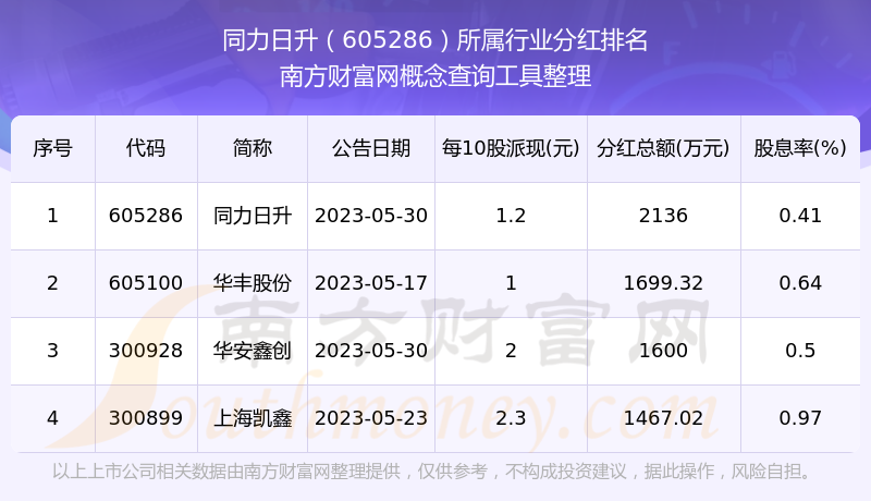 二、同力日升605286行業(yè)分紅排名